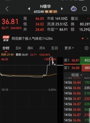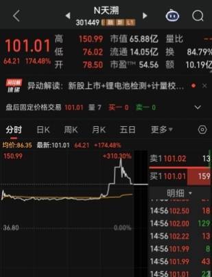 此外,今日上市的新股N天溯、N锡华也双双大涨,盘中触发二次临停,N锡华最高上涨355.45%,N天溯最高上涨310.3%。截至收盘,N纳百川上涨408.17%,报115元/股,成交14.54亿元,总市值128.4亿元;N锡华上涨264.46%,报101.01元/股;N天溯上涨174.48%,报101.01元/股。